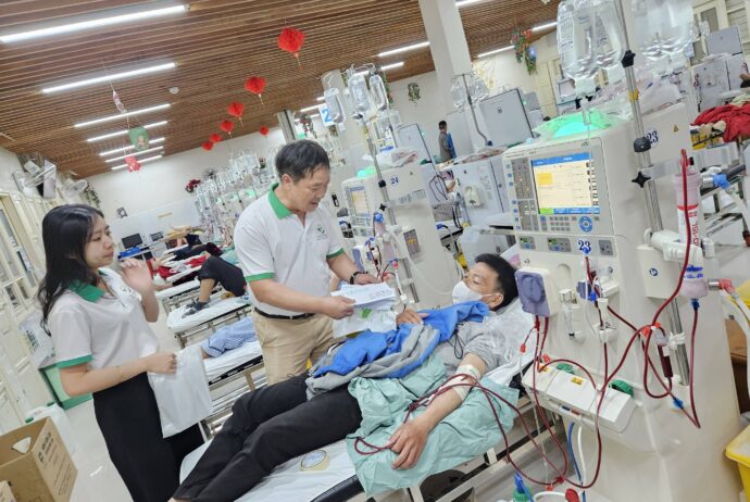 Cũng trong thời khắc ấy, không khí ở Bệnh viện Trung ương Huế hoàn toàn khác hẳn với những gì chúng ta cảm nhận khi chúng tôi đến thăm và gửi chút tình đồng cảm của anh Chương Jôn Đặng – Công ty Saigon Khai Thuế và chị Jenny Cao đến quý bệnh nhân đang điều trị, chạy thận tại Khoa Thận Nhân tạo và Khoa Nhi, Bệnh viện Trung ương Huế.